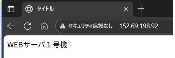 index.html ファイルを作成し、「WEBサーバ1号機」と表示されるようにします。