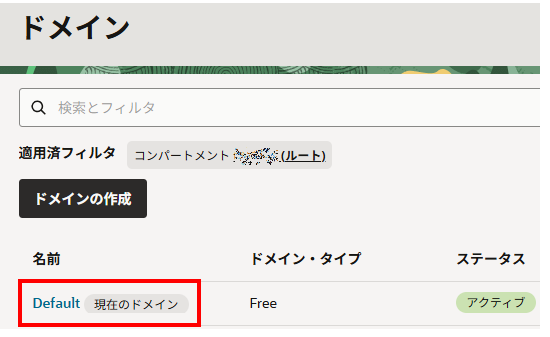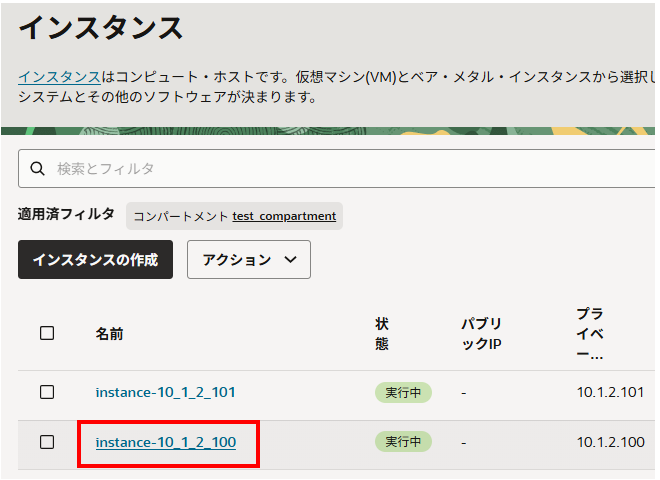適用済フィルタでコンパートメントを指定し、該当インスタンスをクリックします。