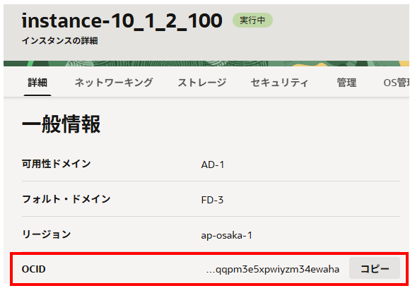 OCIDのコピーをクリックしてOCIDを控えます。