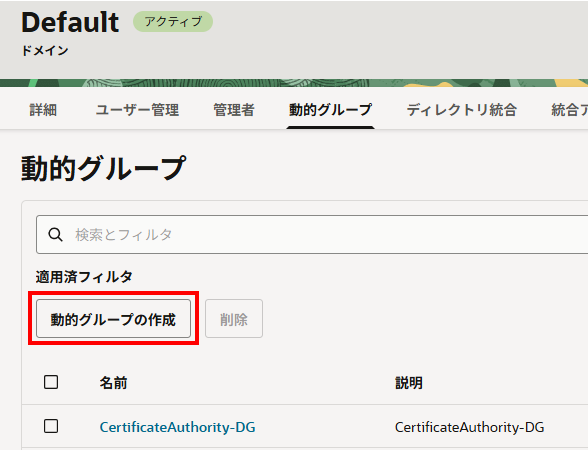 今回は、Defaultドメインへ動的グループを作成します。(※カスタムドメインでも問題ありません)
