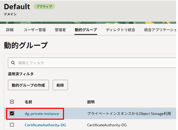 動的グループ「dg-private-instance」が作成されました。