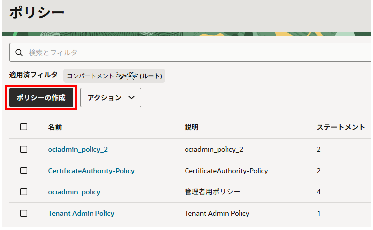 ポリシーを作成(OCIコンソール)