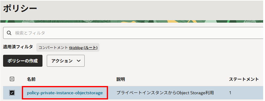 適用済みフィルタは、ルート・テナンシを選択します。(※ポリシーは、ルート・テナンシである必要はありません)