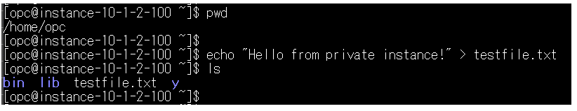 echo “Hello from private instance!” > testfile.txt