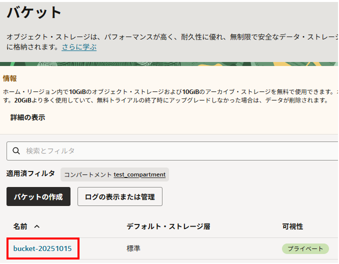 バケット名を確認(OCIコンソール)します。