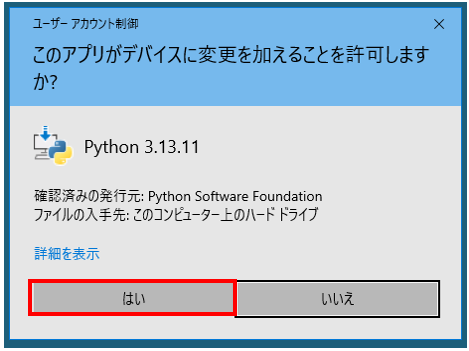 Pythonのバージョンは 3.10 ~ 3.13 であることが確認できます。