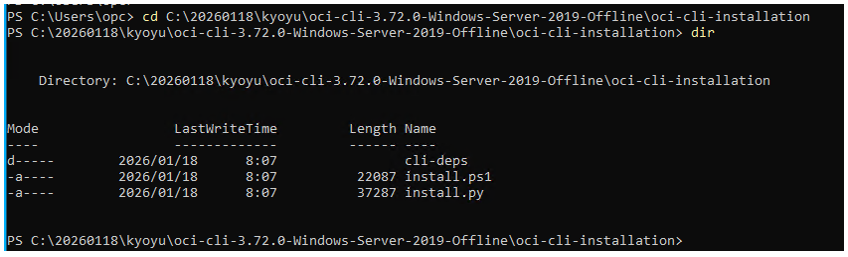 cd C:\20260118\kyoyu\oci-cli-3.72.0-Windows-Server-2019-Offline\oci-cli-installation