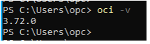 OCI-CLIのバージョンを確認します。バージョン「3.72.0」が表示されました。