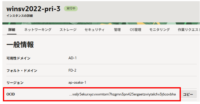 OCIDのコピーをクリックしてOCIDを控えます。