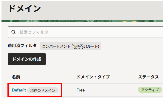 左ペインのアイデンティティとセキュリティ > ドメイン > Default をクリックします。