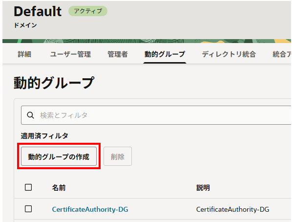 今回は、Defaultドメインへ動的グループを作成します。(※カスタムドメインでも問題ありません)