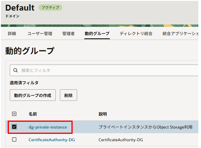 動的グループ「dg-private-instance」が作成されました。