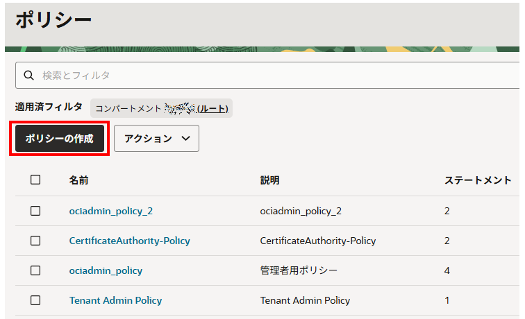 ポリシーを作成(OCIコンソール)