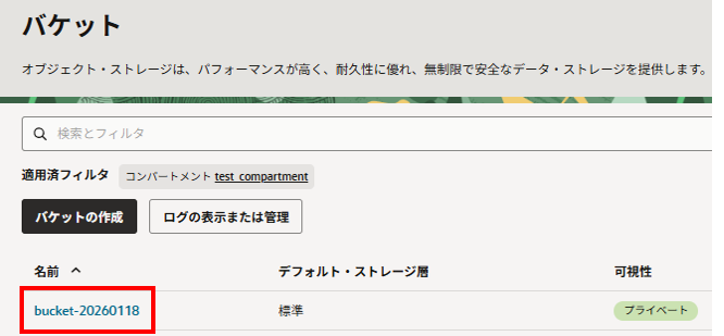 バケット名を確認(OCIコンソール)します。