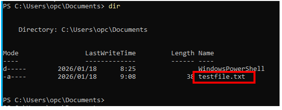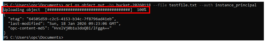 oci os object put -bn bucket-20260118 --file testfile.txt --auth instance_principal