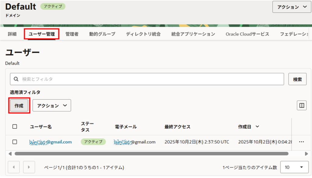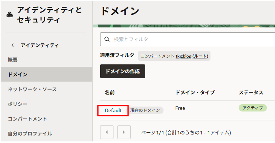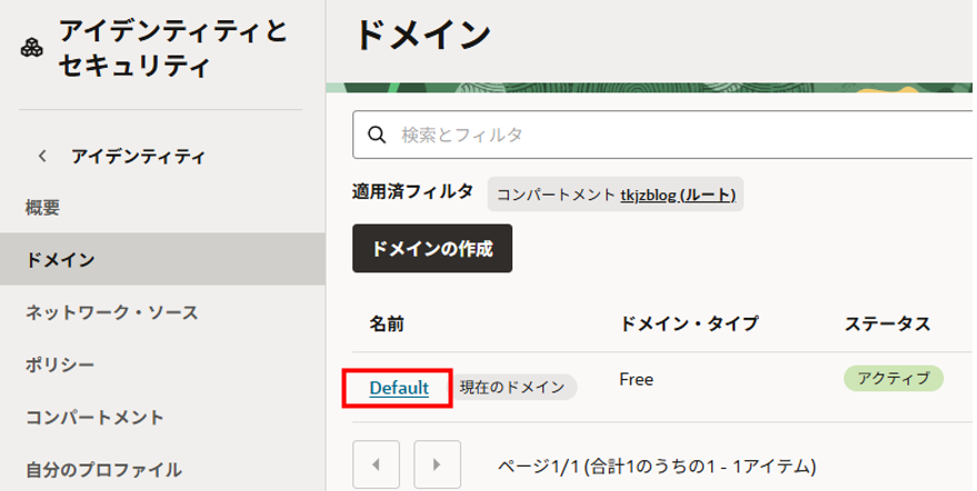 OCI テナンシを作ったときに「Default」という標準のドメインが自動で作成されます。