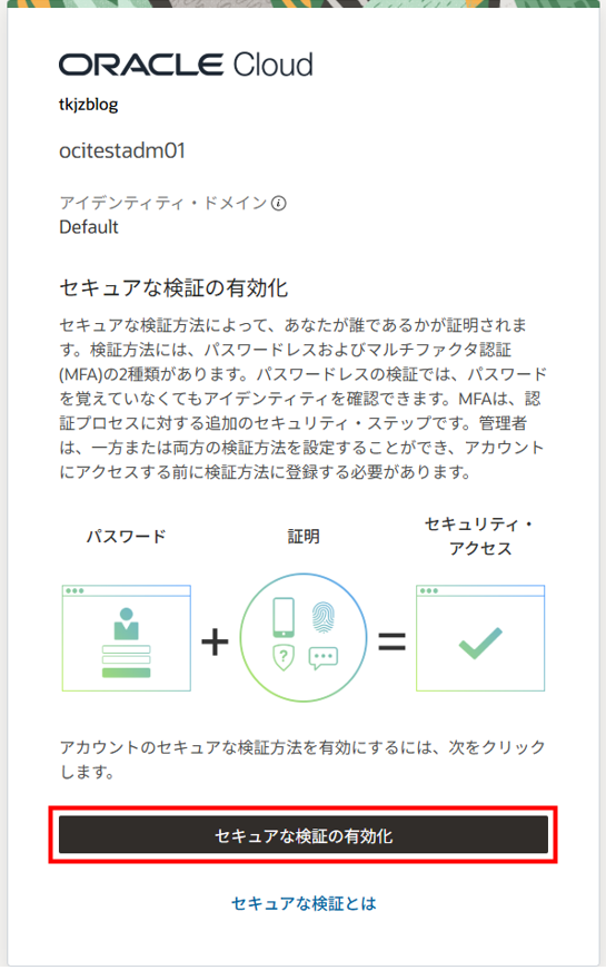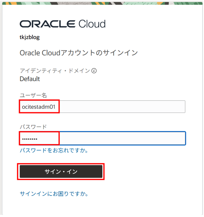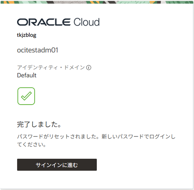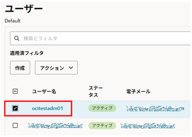 管理者ユーザーとして「ocitestadm01」を作成します。