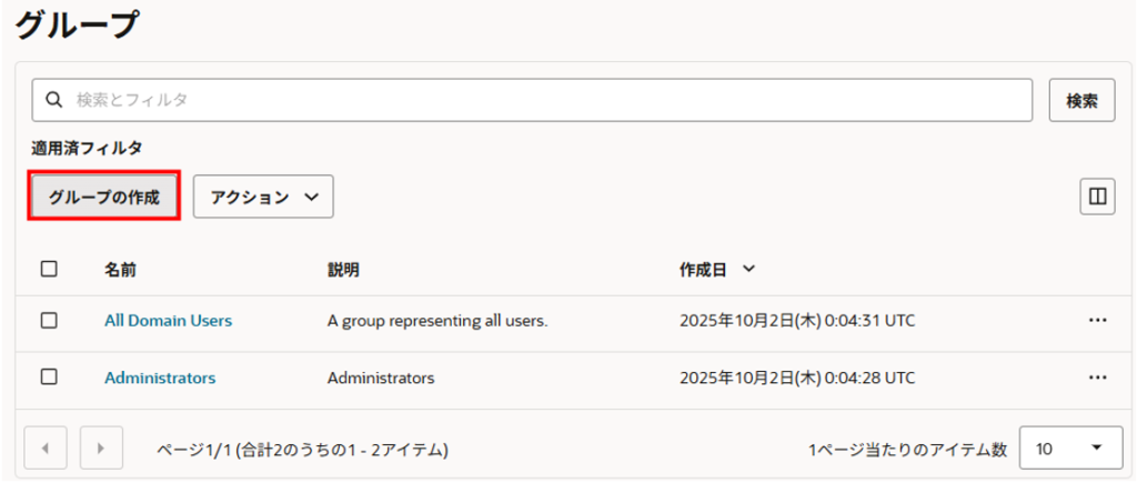 すべてのユーザー・グループは最初、この Default ドメイン の中で管理されます。