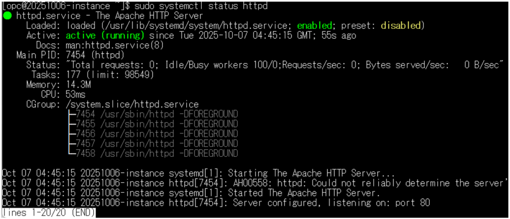 Apache HTTPサーバーをインストールします。「Complete!」が表示されればインストールは完了しています。
