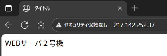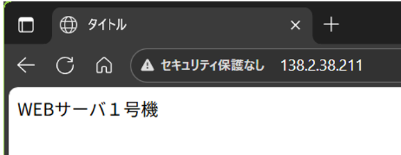 ブラウザを起動、「http://パブリックIPアドレス」を入力してWEBページが表示されるか確認します。
