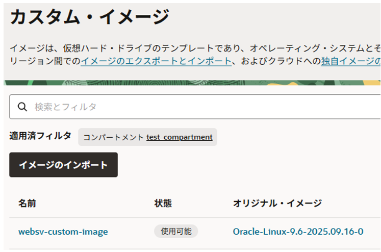 AWSのAMIに相当するものはないかと調べたらOCIでは「カスタム・イメージ」がそれに該当するそうです。