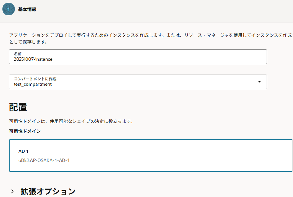 ※私は大阪リージョンで可用性ドメインが1つですので選択の余地はありません
