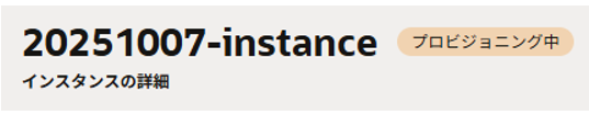 インスタンスの作成が開始され、ステータスは「プロビジョニング中」になりました。