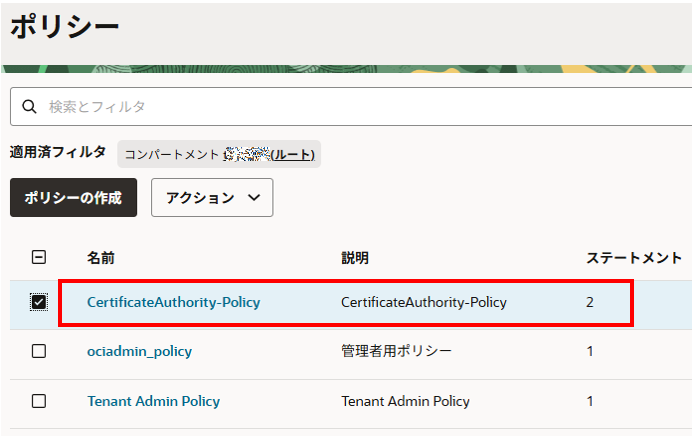 証明書コンパートメント:証明書を作成したコンパートメント