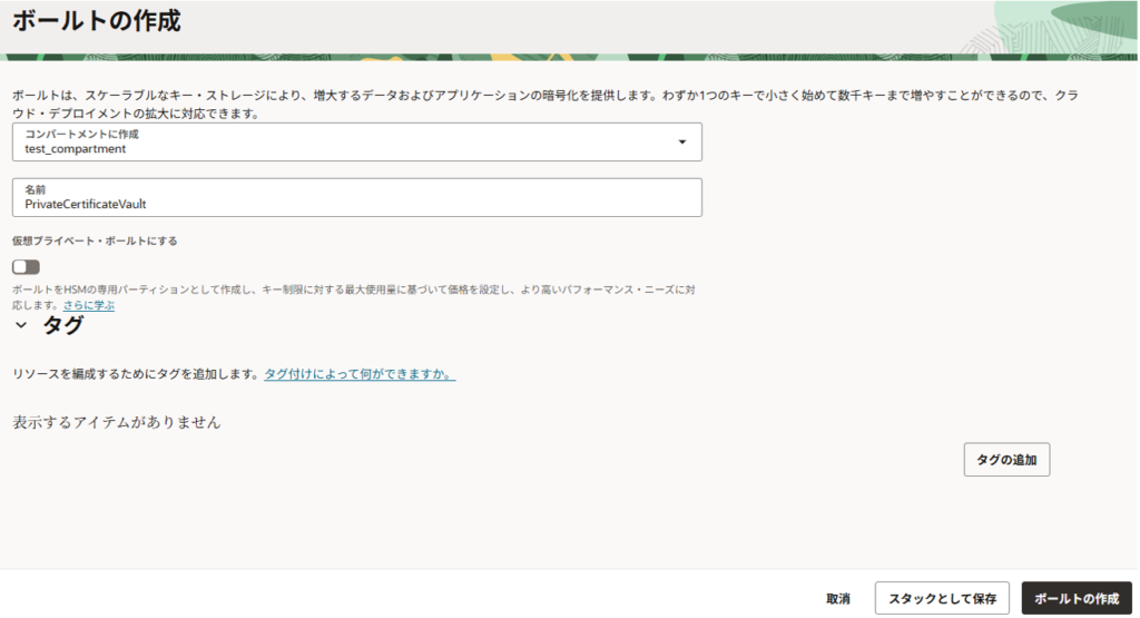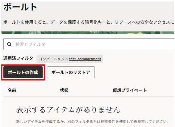 <コンパートメント名>のボールト:作成したものを選択(デフォルトで選択されました)