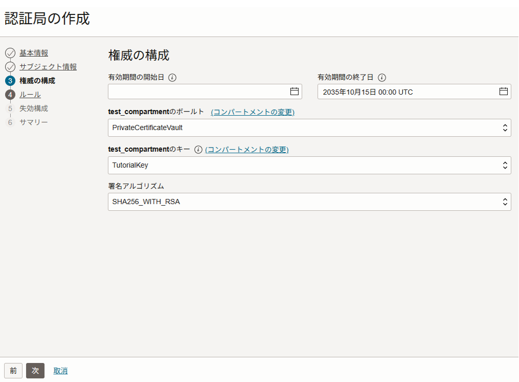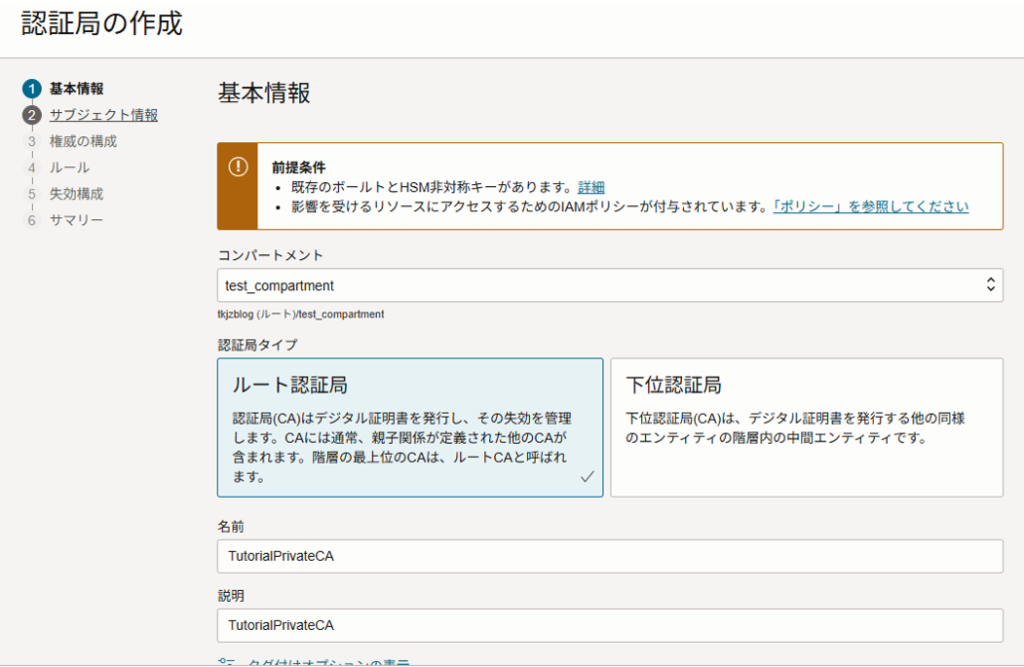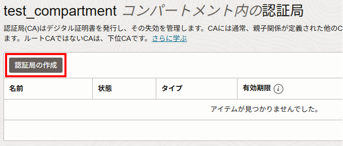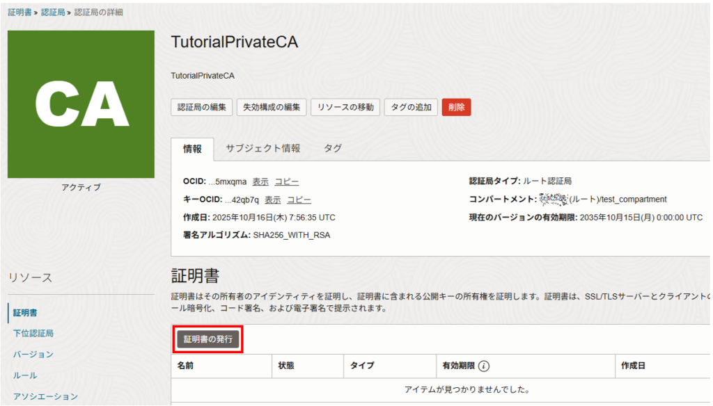 <コンパートメント名>の発行元認証局:作成したものを選択