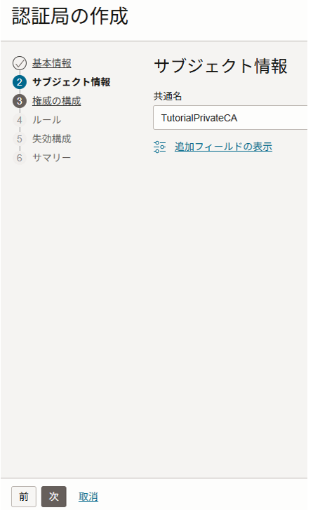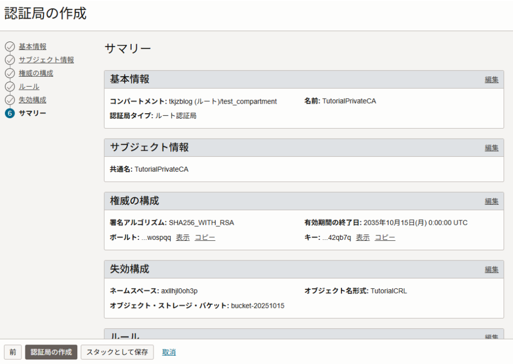 サマリーの内容を確認し、「認証局の作成」をクリックします。