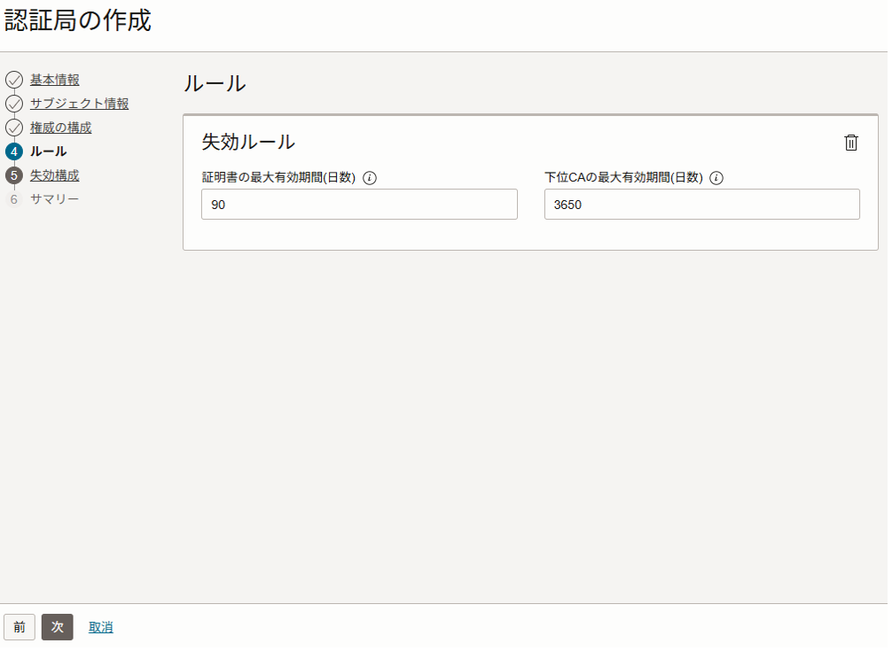 証明書の最大有効期間(日数):90(デフォルト)