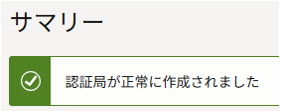 「認証局が正常に作成されました」が表示されることを確認します。