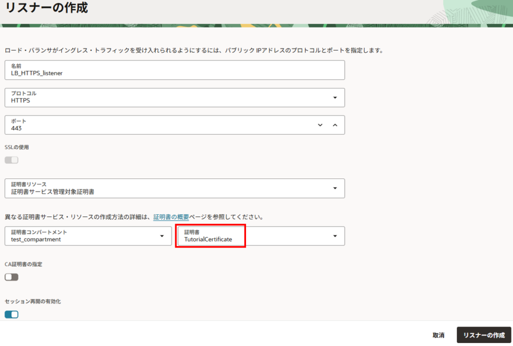 OCIチュートリアルを参考にプライベート認証局を作成、証明書を発行し、証明書をロード・バランサへ適用してHTTPS通信ができるか検証してみたいと思います。
