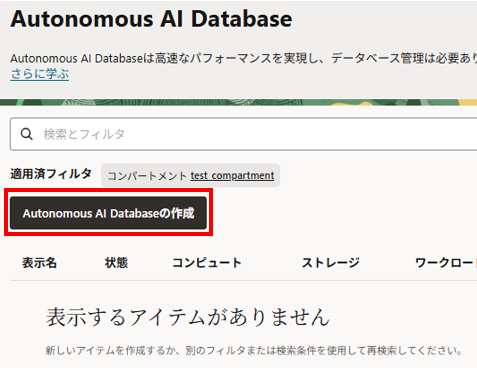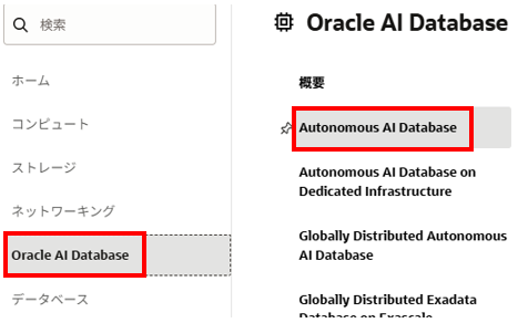 左上ハンバーガーメニューで「Oracle AI Database」から「Autonomous AI Database」を選択します。