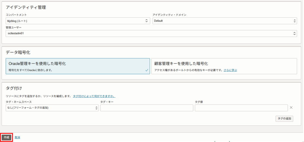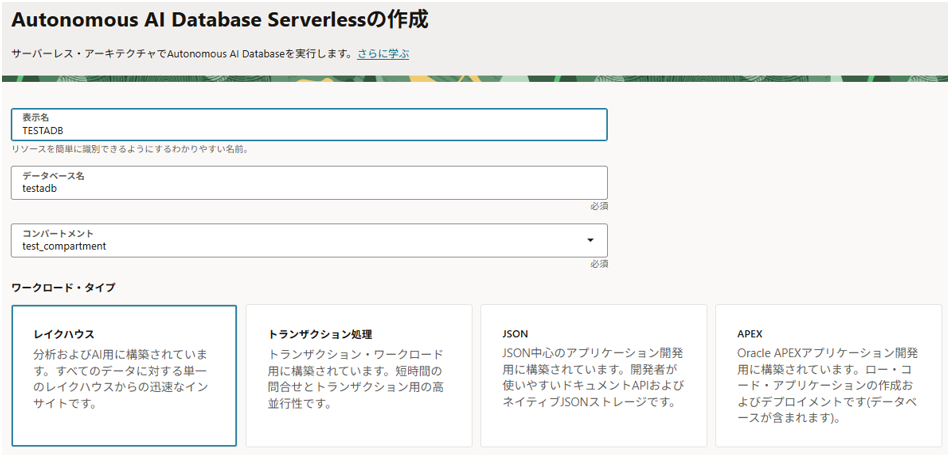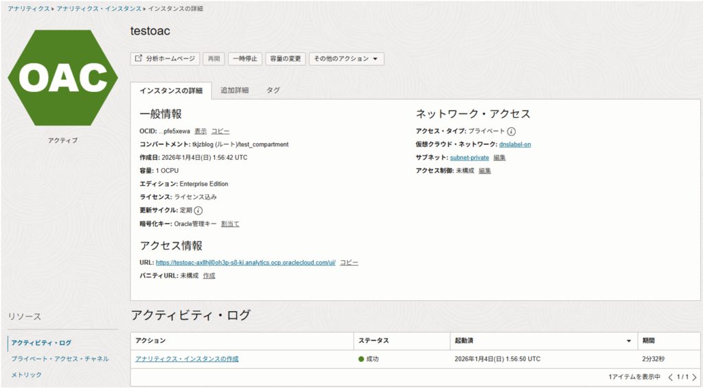 ※OACの作成に進む前にプライベート構成のADBが構築済みである必要があります。