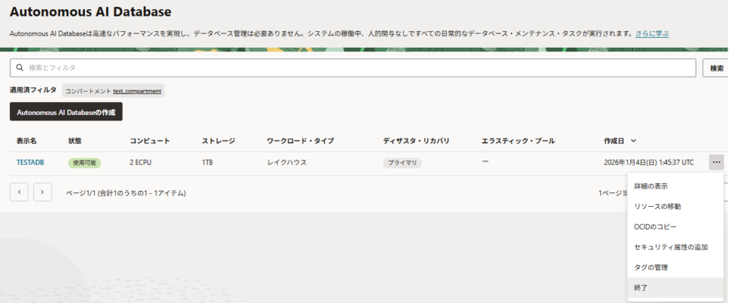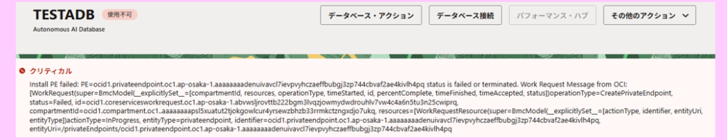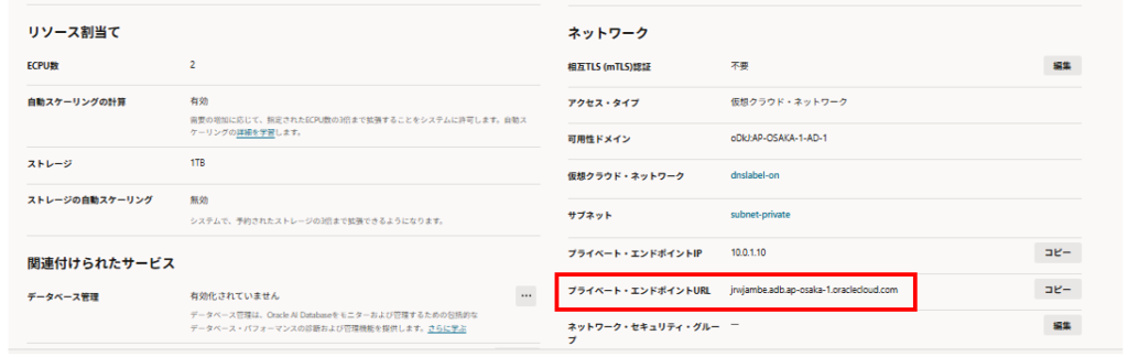 プライベート・エンドポイントURL : jrwjambe.adb.ap-osaka-1.oraclecloud.com