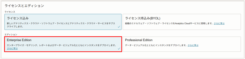 Private Access Channel(PAC)はEnterprise Editionを選択しないと利用できないため、Enterprise Editionを選択します。