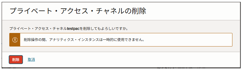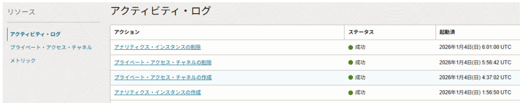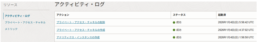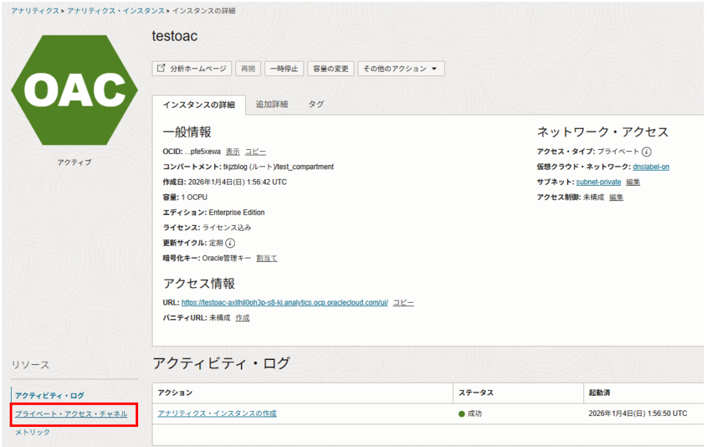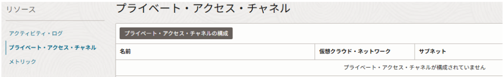 作成したアナリティクス・インスタンスの詳細画面で、左側のリソースから「プライベート・アクセス・チャンネル」を選択します。