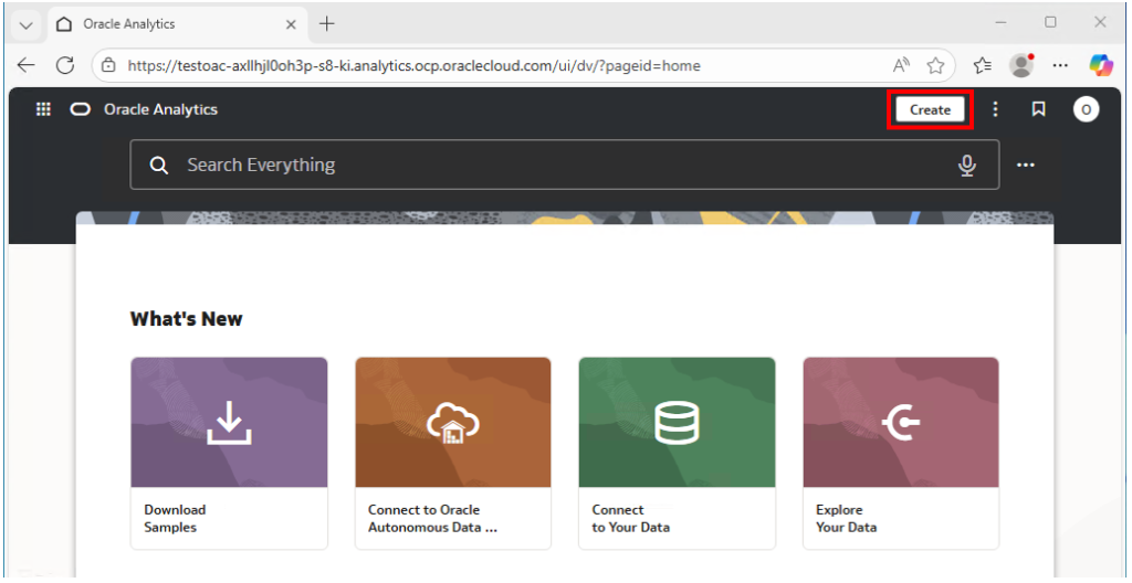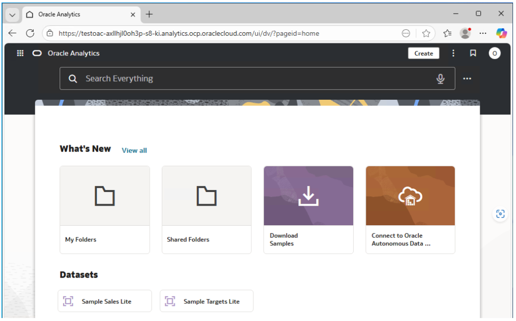 ブラウザを起動し、OACで確認したURLへアクセスするとOracle Analyticsの画面が表示されました。