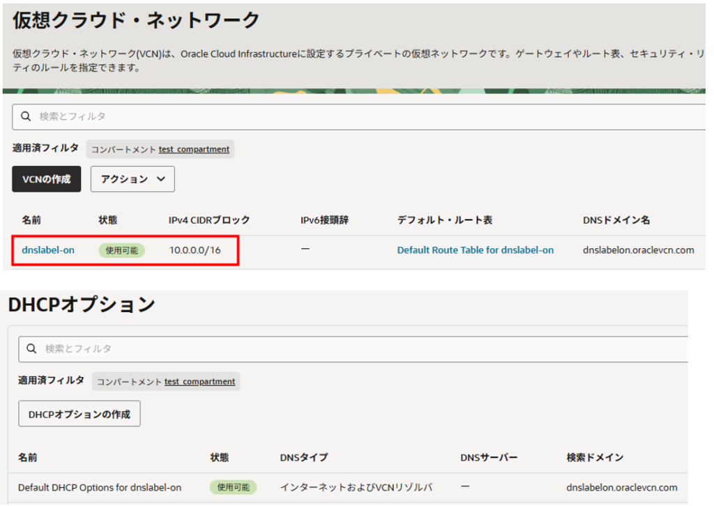 VCN作成時に自動で以下のプライベート・ゾーンとレコードが作成されました。
